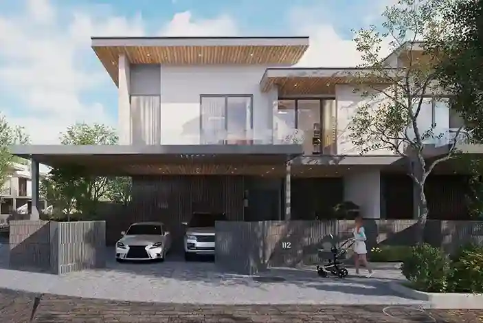 Pinewood Estate Homes, part of The Next Chapter project, is a premium residential community located within Jumeirah Golf Estates, Dubai. The complex features 247 thoughtfully designed units, including three-bedroom villas and two types of four-bedroom townhouses. Each home offers a private terrace, while corner townhouses include an elevator, a swimming pool, and rooftop access with a canopy.